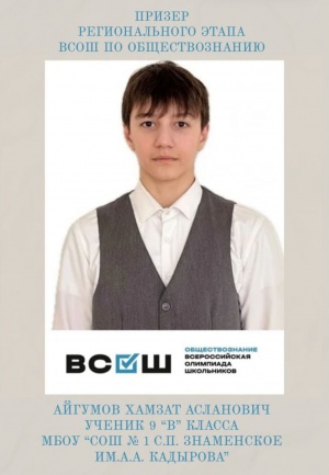 Муниципальное бюджетное общеобразовательное учреждение "Средняя общеобразовательная школа № 1 с. п. Знаменское им. А.А Кадырова" функционирует с 1960г. Школа является образовательным учреждением для обучающихся 1-11 классов, которая реализует образовательные программы начального общего, основного общего и среднего общего образования.