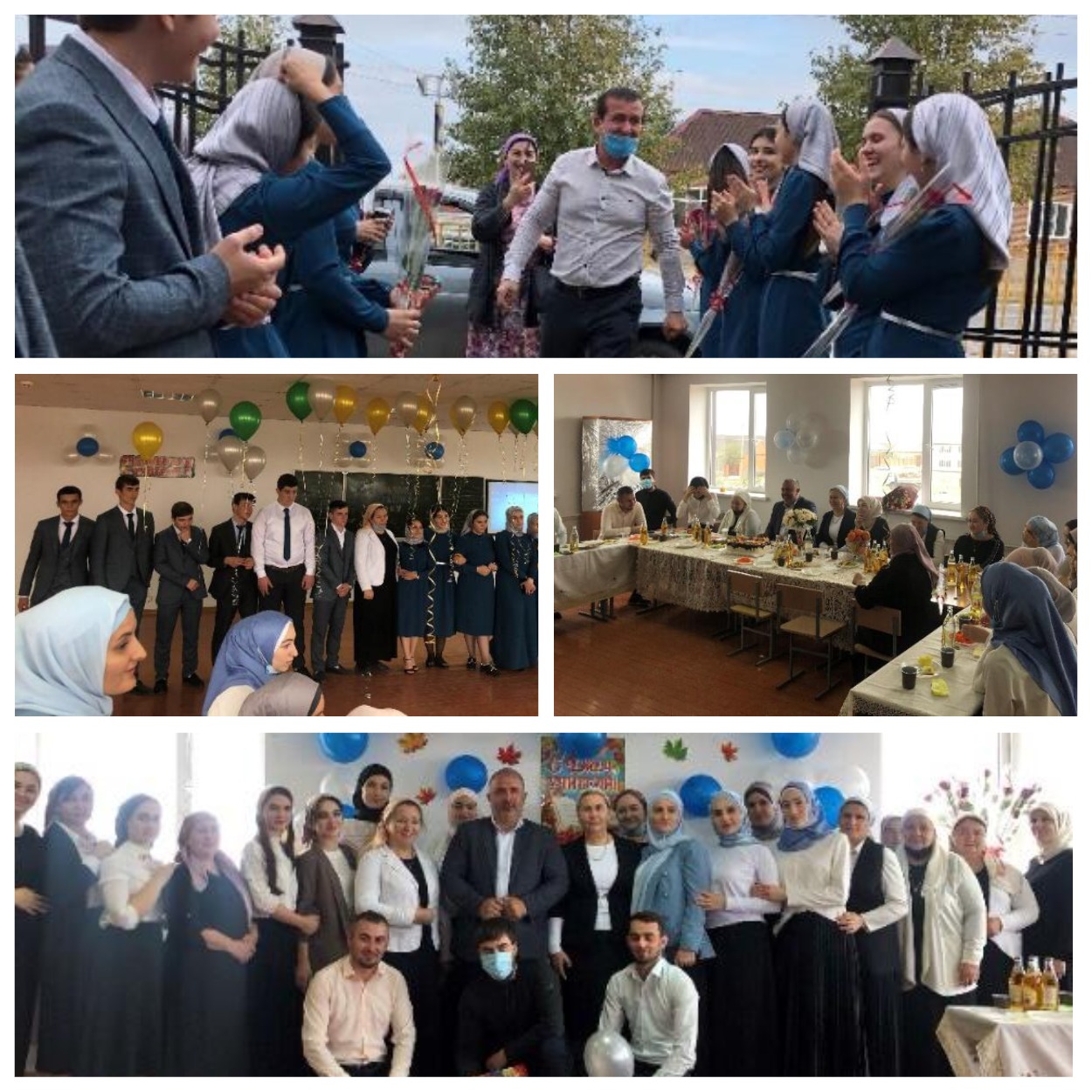 Дети встречали каждого учителя и дарили им цветы и сладости. Словами благодарности, уважения, признательности и пышными букетами ярких осенних цветов был отмечен труд учителей. Для них звучали песни, стихотворения о школе и учителях, был показан видеоролик из школьной жизни. Учителя и ученики получили большой эмоциональный заряд и огромное удовольствие от проведённого мероприятия. Директор школы Мударова М.А. совместно с председателем профсоюза школы Мерзуевой М.А. организовали праздничный обед. На мероприятии присутствовал начальник отдела образования администрации Надтеречного муниципального района Муцулханов И.С.. Ильяс Султанович поздравил всех учителей с праздником и пожелал им успехов в работе и в жизни, выразил слова благодарности в адрес учащихся и их родителей за организованное торжественное мероприятие в честь Дня Учителя. Улыбки счастья окрыляли лица учителей и учащихся. Слова поздравления учителя получили не только от учащихся, но и от выпускников, студентов, которые прислали для учителей свои поздравления из разных городов страны, где они проходят обучение.В заключении мероприятия со словами поздравлений, пожеланий и благодарности в адрес ребят выступил директор школы Мударова М.А. - с 29.09. по 06.10.2020 года прошел конкурс рисунков «Спасибо Вам, родные учителя!»;- с 29.09. по 06.10.2020 года провели турнир по футболу, посвященный любимым учителям среди учащихся среднего звена;- с 01.10 - 06.10.2020 года провели единый классный час «Несущий свет и добро!»