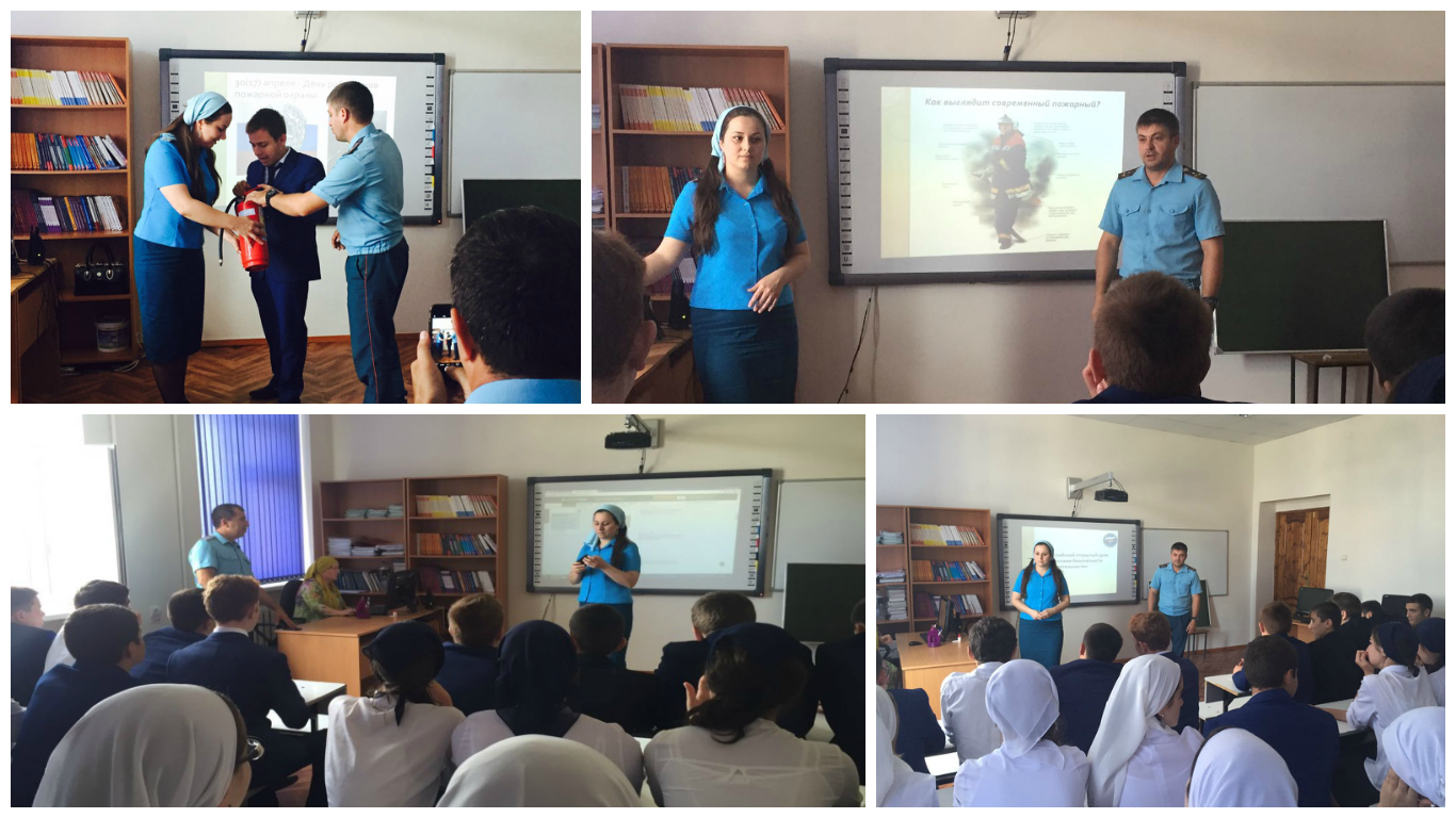 Умаровой С.М. Работники противопожарной службы рассказали ребятам об истории пожарной охраны, о трудовых буднях огнеборцев, а также о профессиональных праздниках. С особым вниманием учащиеся слушали истории о боевых выездах и о самых сложных пожарах в практике каждого работника. Кроме того, работники отдельного поста поведали старшеклассникам об основных причинах возникновения пожаров и мерах безопасности, которые необходимо соблюдать, в целях предотвращения пожара.