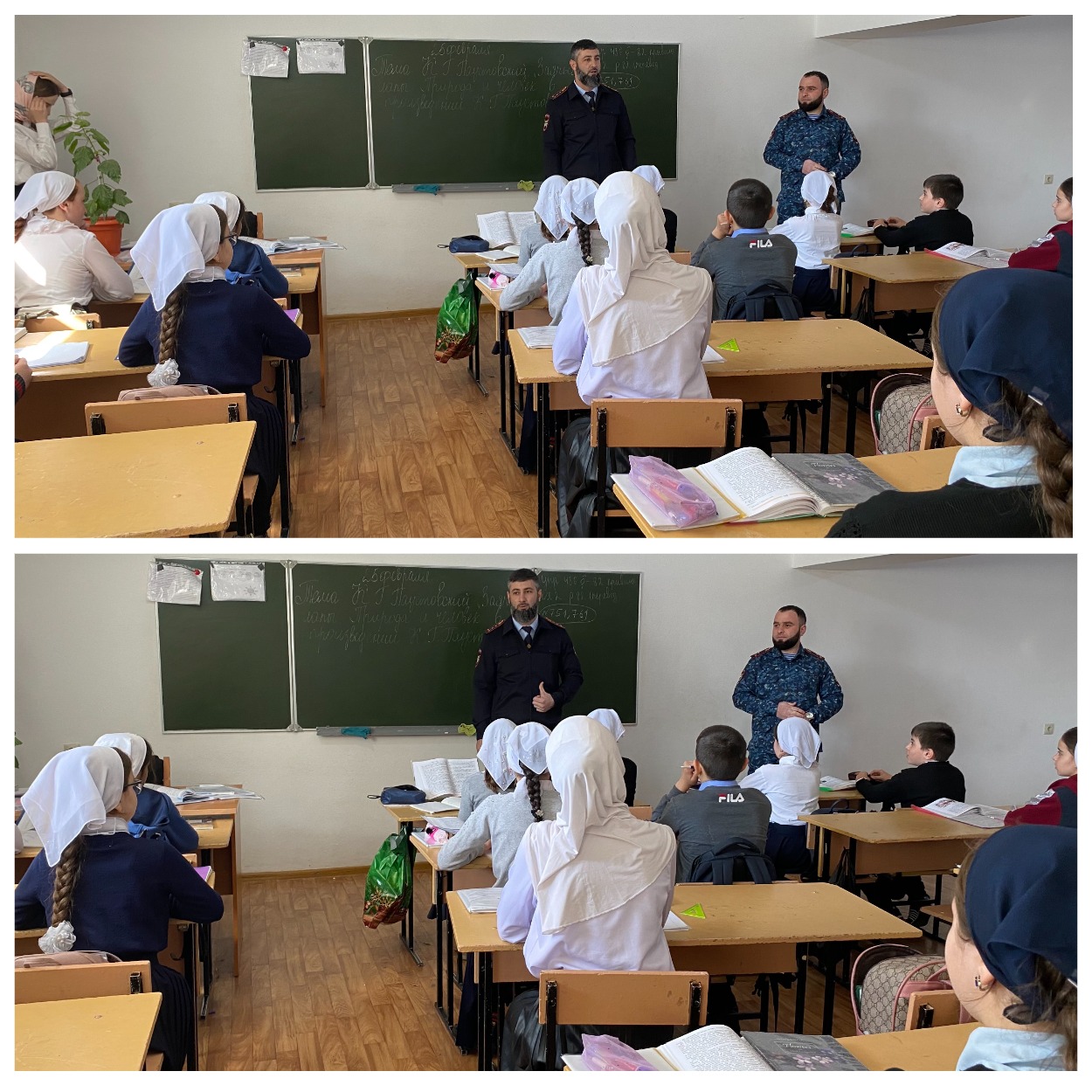 В МБОУ "СОШ № 1 с. п. Знаменское" проведена встреча с инспектором по ПБДД ОГИБДД ОМВД России по Надтеречному району, капитаном полиции Махтиевым И.И. и инспектором ОПДН ОУУП и ПДН ОМВД России, старшим лейтенантом полиции Сайдулаевым С-М.Ш. с учащимися 6-9 классов на темы: «Уголовная ответственность несовершеннолетних» и «Юный пешеход!».