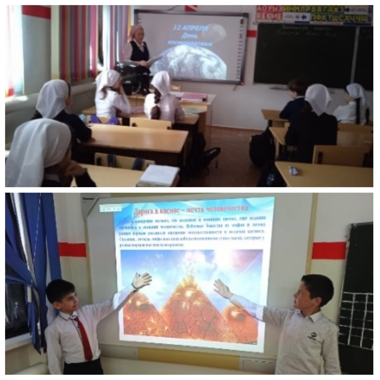 Классным руководителем 3В класса Сугаиповой Г.А. проведена медиа-беседа «Человек шагает в космос». Учащиеся узнали много нового и интересного: о первых запусках спутников с животными, о Юрии Гагарине – первом в мире космонавте, об Алексее Леонове – первом человеке, вышедшем в открытый космос. С интересом дети послушали отрывок из книги М. Познанской «Белка и Стрелка», посмотрели видео кадры из истории космических полетов, а также видеоролики с песнями о космосе в исполнении детей