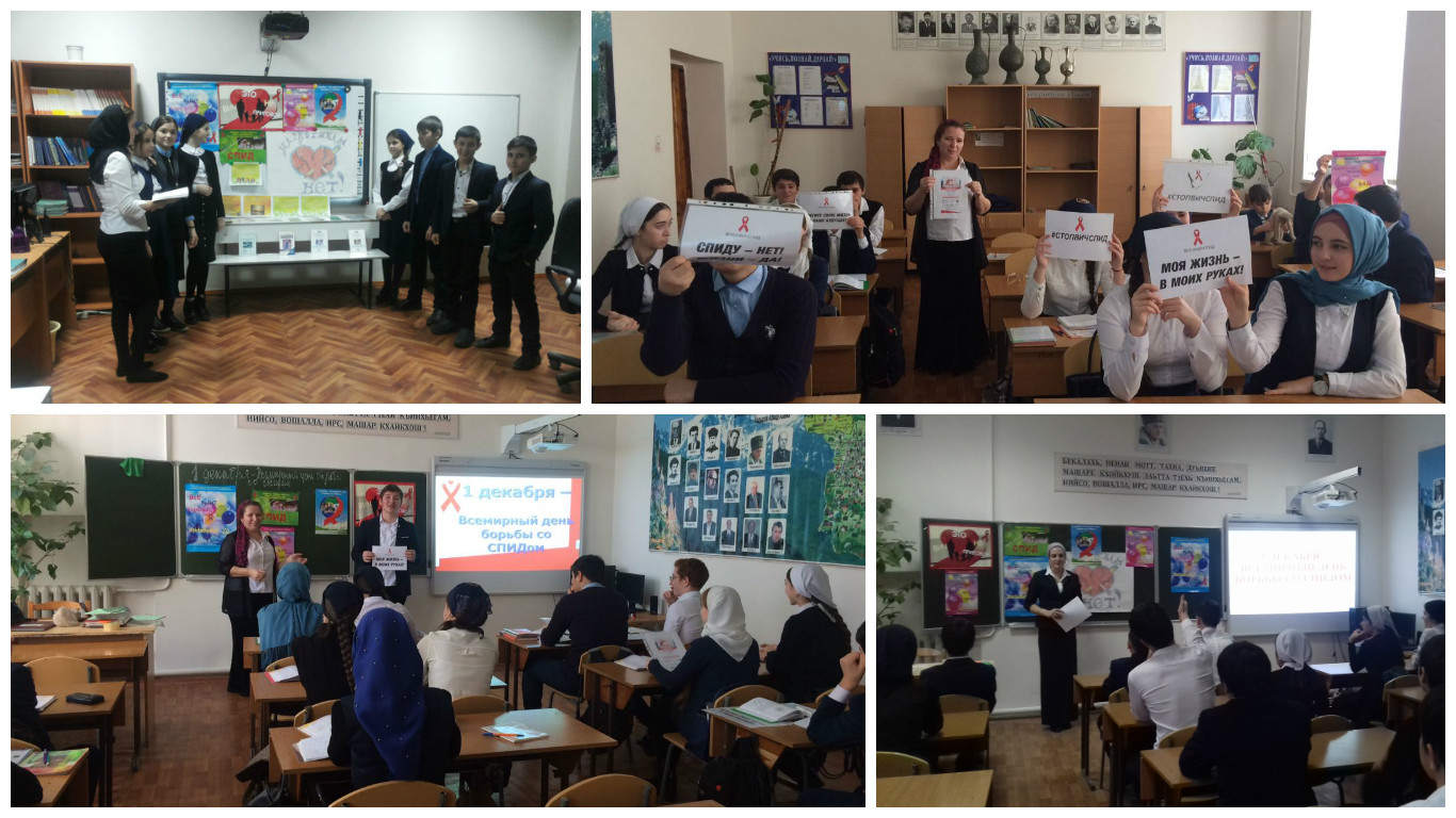 10. 01.12.2016г. вцелях сохранения здоровья у подрастающего поколения через расширение знаний о вредных привычках и ВИЧ/СПИДе среди учащихся 9-х классов учителем биологии Зелимхановой М.В. проведено внеклассное мероприятие, посвященное Всемирному Дню борьбы со СПИДом «Это должен знать каждый!».