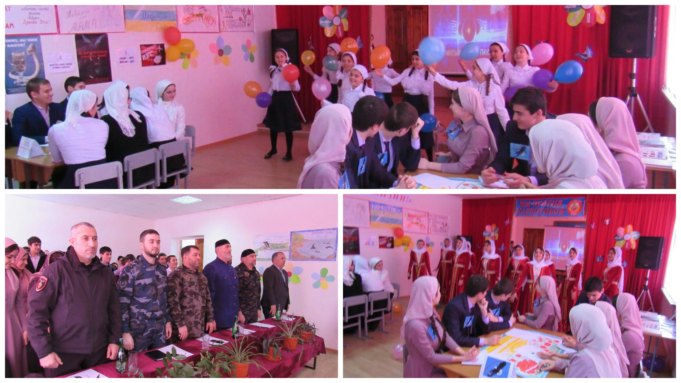 1 февраля в МБОУ "СОШ 1 с.п.Знаменское" Надтеречного района среди учащихся 10-11 классов прошло мероприятие в форме брейн-ринга под названием "Ради жизни" и под девизом "Наркомании твёрдое НЕТ" в целях профилактики наркомании и пропаганды здорового образа жизни. На мероприятии присутствовали: глава администрации Надтеречного района Куцаев Шамиль Ахмедович, муфтий Надтеречного района Авдарахмаев Абдуллах, начальник отдела МВД по Надтеречному району ЧР полковник полиции Бацилов В.С., начальник ОМВП УНК МВД по ЧР капитан полиции Лорсанов Ахмед Адамович,зам начальника ОМВП УНК МВД по ЧР подполковник полиции Шахабов Абулхан Германович и начальник РУО Муцулханов Иляс Султанович, которые являлись членами жюри брейн-ринга. Брейн-ринг состоял из 10 туров : 1 тур. Викторина "Профилактика наркомании", 2тур рейтинг качества характера человека, 3 тур "Вспомни слово",4 тур "Мифы о наркомании",5 тур "Физкульт минутка",6 тур "Правовое поле", 7 тур "Музыкальный",8 тур "Театральный",9 тур-конкурс плакатов "Молодёжь против наркотиков" и 10 тур-вопросы от психолога. Мероприятие прошло на высоком эмоциональном уровне. Шахабов А.Г. провёл с ребятами интересную беседу о правовом поле,связанном с наркотиками.Также выступил муфтий района Авдарахмаев А.,который рассказал,что говорит Ислам о наркотиках. Затем выступил начальник РУО Муцулханов И.С.,который поблагодарил команды за активное,плодотворное участие в брейн-ринге. В заключении выступил Глава администрации Надтеречного района Куцаев Ш.А.,который поблагодарил всех за активное участие в брейн-ринге,подвёл итоги встречи. А после окончания мероприятия Куцаев Ш.А. беседовал с ребятами о их школьной жизни.