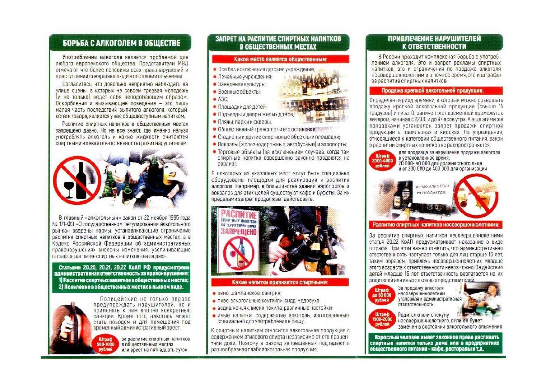 Памятка об ответственности за реализацию алкогольной продукции несовершеннолетними
