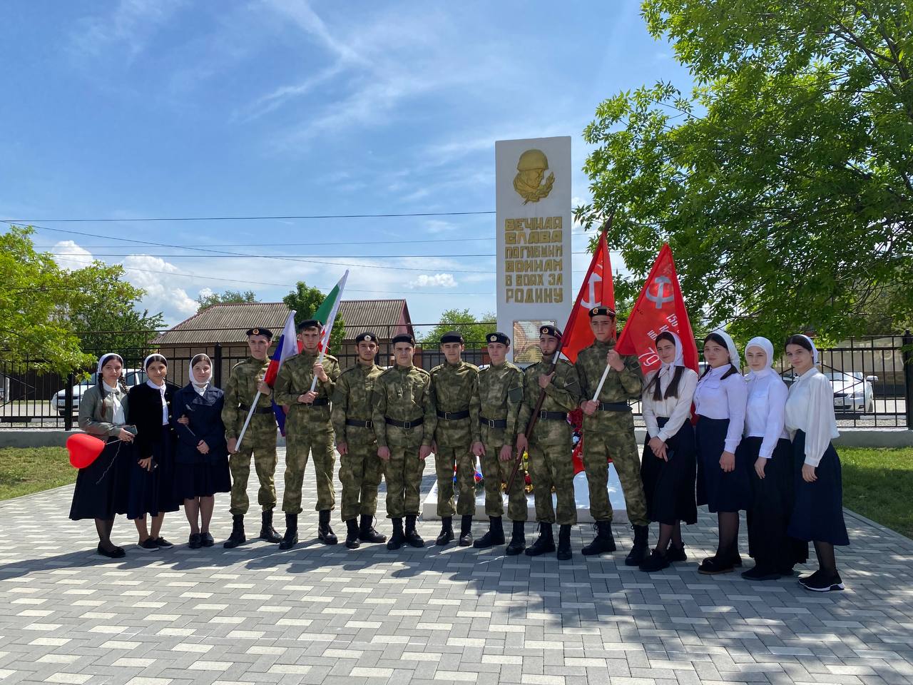 В МБОУ «СОШ 1 с.п.Знаменское им.А.А.Кадырова» прошел митинг по возложению венков к памятнику павшим воинам в боях за Родину и церемония передачи Знамени Победы.