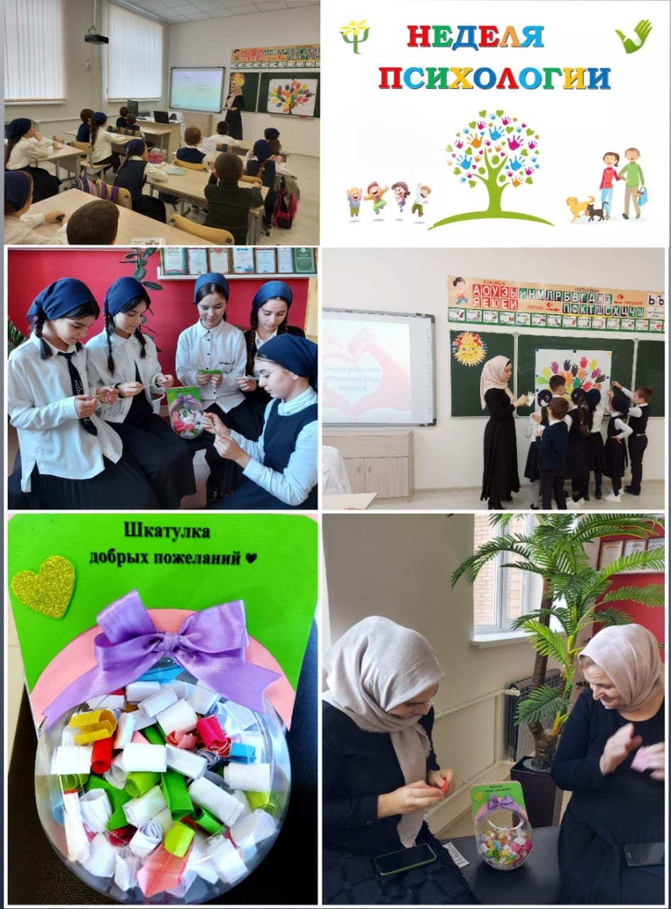 21.10.2022В МБОУ "СОШ №1 с.п. Знаменское им. А.А.Кадырова" педагогом-психологом А.З. Микалаевой была проведена "Неделя психологии".