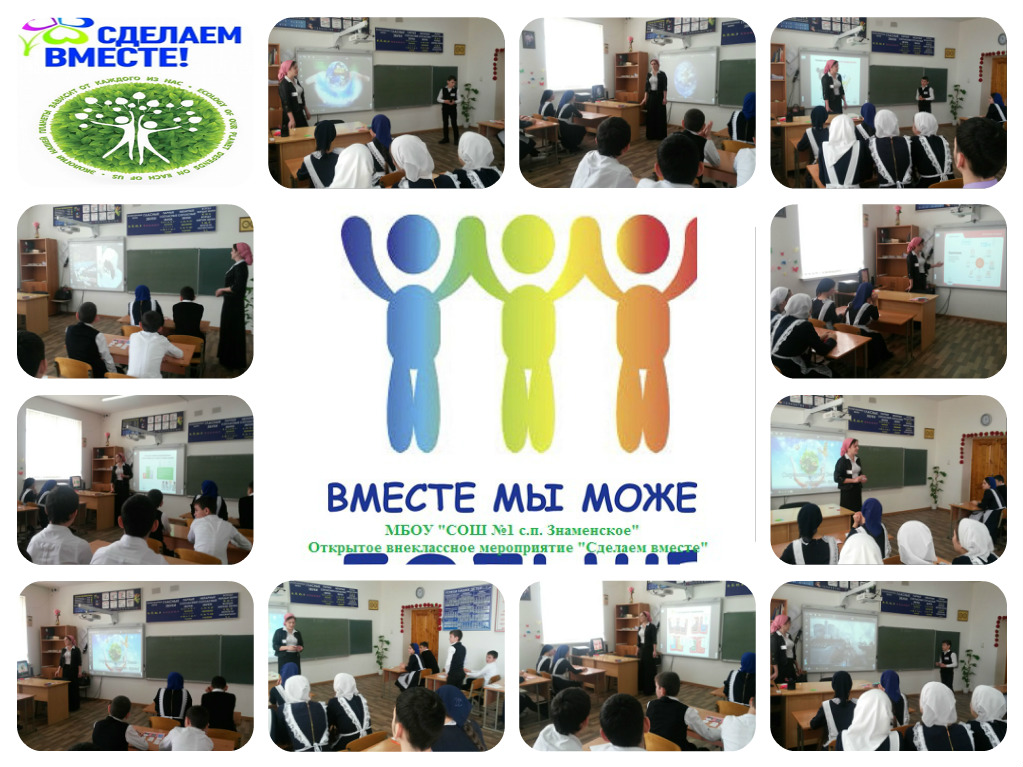 Урок приурочен к всероссийскому экологической акции «Сделаем вместе». Урок посвящен тому, как каждый школьник может помочь в решении проблемы мусора. Благодаря этому экоуроку, ученики узнали много фактов о привычном мусоре, о раздельном сборе отходов и переработке, благодаря которой из отходов получаются новые вещи. Также школьники научились грамотно обращаться с отходами через игровые состязания. Каждый класс составлял единую команду. В конце урока каждая команда выступила со своими планами действий по раздельному сбору мусора. Ребята решили действовать и уменьшать мусорный след в повседневной жизни вместе со своими родителями. Приняли решение принять активное участие в сборе макулатуры.