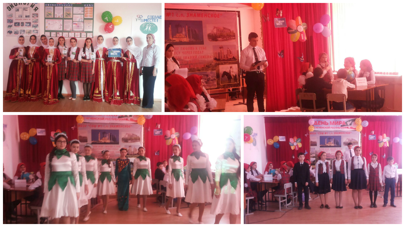 В конце мероприятия учащиеся показали праздничный концерт, где прозвучали песни о красоте родной природы, мире, дружбе, о любви к малой Родине. Вокально-хореографическая группа «Синтар» исполнила танец «Подснежники» и народный чеченский танец.