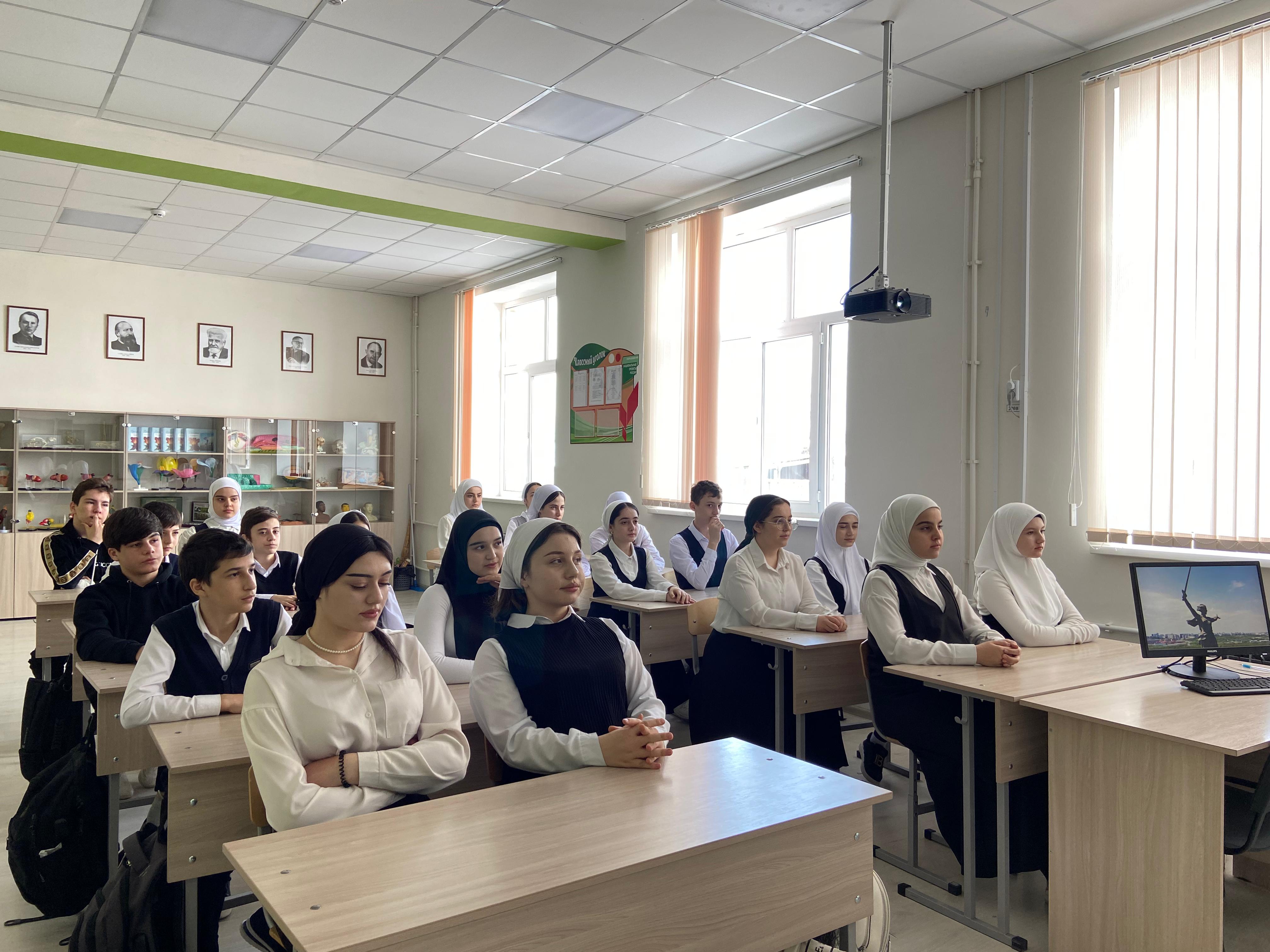 В МБОУ «СОШ 1 с.п. Знаменское им. А. А. Кадырова» в 8 А классе был проведён классный класс на тему: «Сталинградская битва».