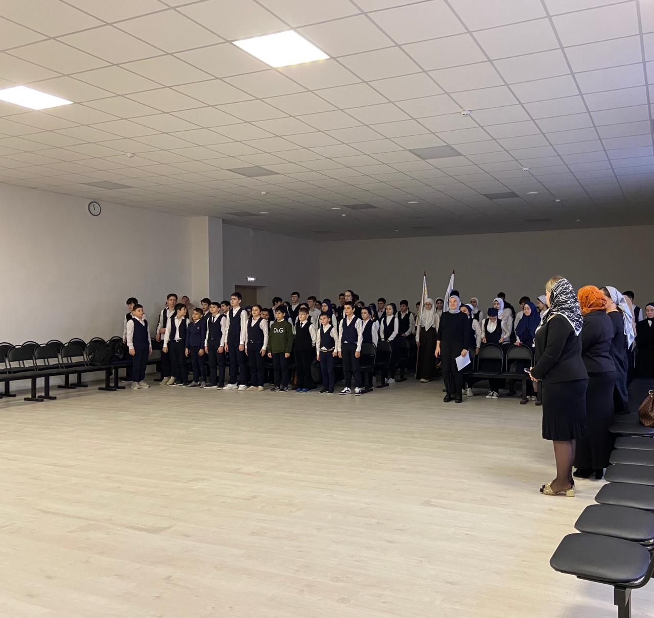 Еженедельная линейка, посвященная внесению флага РФ И ЧР. Еженедельно внести флаг под гимн страны – одна из важных традиций.