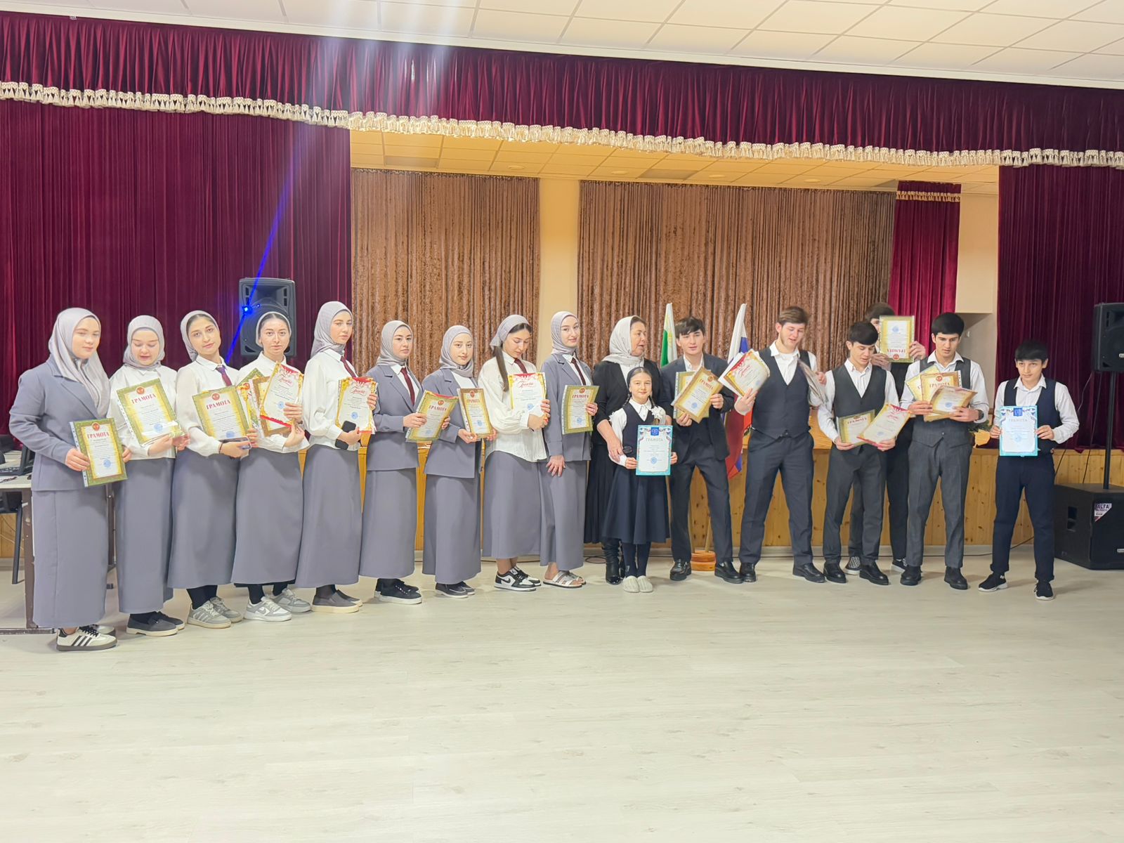 14.01.2025В актовом зале прошла торжественная церемония награждения победителей и призёров школьного этапа Всероссийской олимпиады школьников! Директор школы Мударова Малика Абалхасановна поздравила обучающихся, вручила грамоты и пожелала им дальнейших успехов и новых побед.