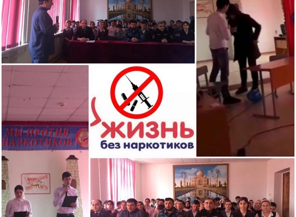 30.01.2019 г. в МБОУ СОШ 1с.п.Знаменское» было проведено открытое мероприятие среди учащихся 8,9,10,11 классов с целью закрепления в сознании учащихся понимания того, что здоровье –важнейшая социальная ценность, которая формируется на протяжении всей жизни; вооружения учащихся знаниями о вреде наркотиков на здоровье человека; сформировать устойчивое отношение к принятию учащимися только здорового образа жизни. Мероприятие прошло в форме литературно-музыкальной композиции с использованием театральных постановок по теме « Наркотики ,их последствия для здоровья». На мероприятии присутствовали : Музаев И.А. полковник полиции, начальник межрайонного отдела № 1 УНК МВД РФ по ЧР, майор полиции ,старший опер уполномоченный межрайонного отдела № 1 УНК МВД РФ по ЧР Абдулазиев А.А.,имам мечети с.п.Знаменское Берсаев Ахмед , ВРИО начальника УУП ПДН ОМВД РФ по ЧР, майор полиции Сатуев У.З. , инспектор УУП ПДН ОМВД РФ по ЧР Хасуева М.В.