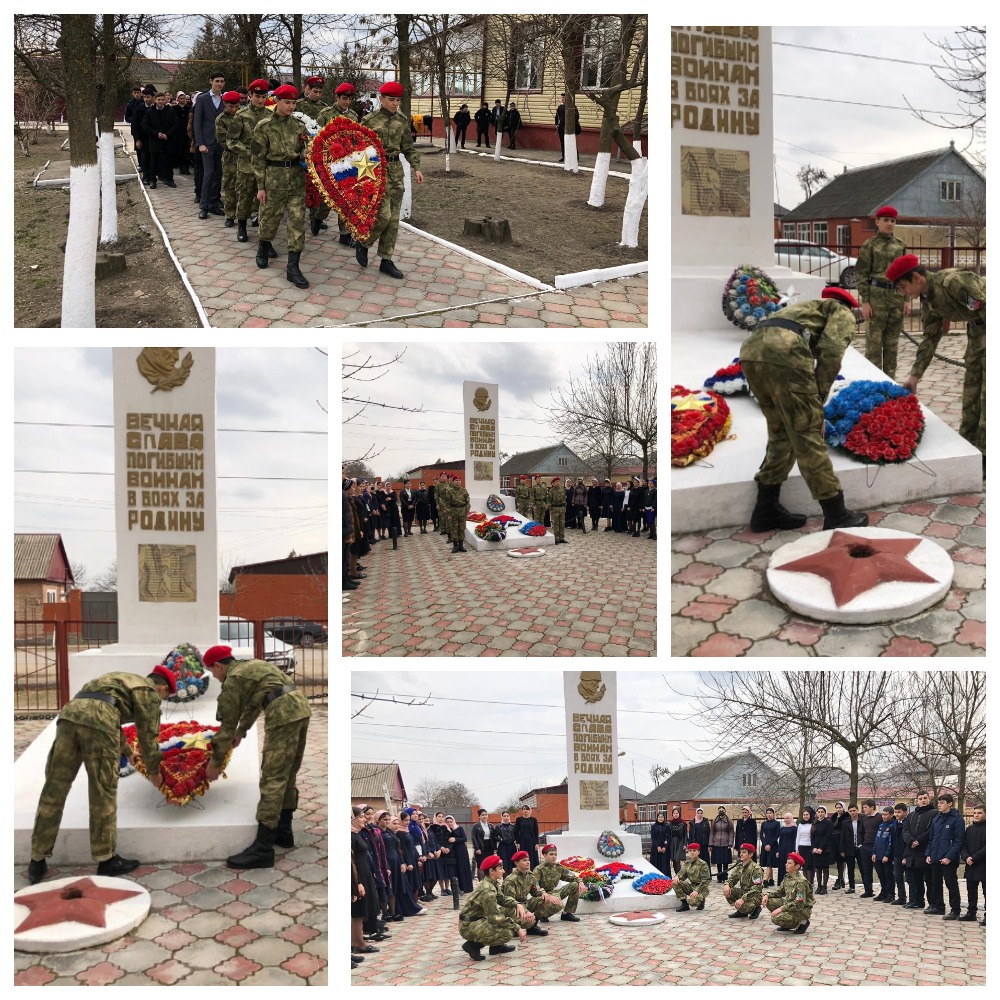 22.02.2019 года в рамках празднования Дня Защитника Отечества и в целях укрепления духовных ценностей, развития интереса к истории России и сохранения памяти о героическом прошлом нашей Родины команда ЕДЮО «Юные Кадыровцы» им. Первого Президента Чеченской Республики Героя России А.-Х. Кадырова и военно - патриотический клуб «Дикая дивизия» МБОУ «СОШ№1 с.п. Знаменское» провели торжественную церемонию возложения венков и цветов к памятнику - обелиску воинского захоронения 1941-1945 годов, находящегося на территории МБОУ «СОШ№1 с.п. Знаменское».